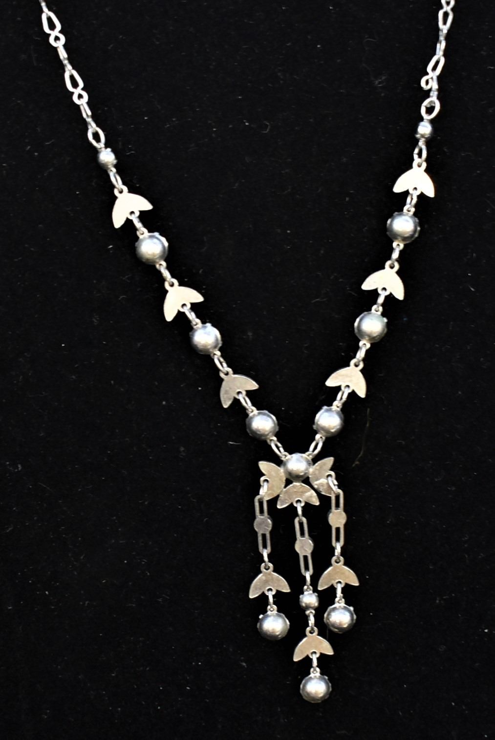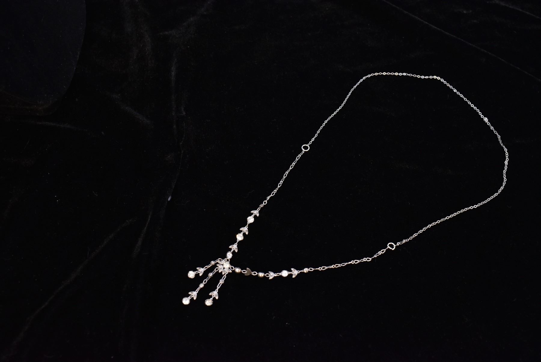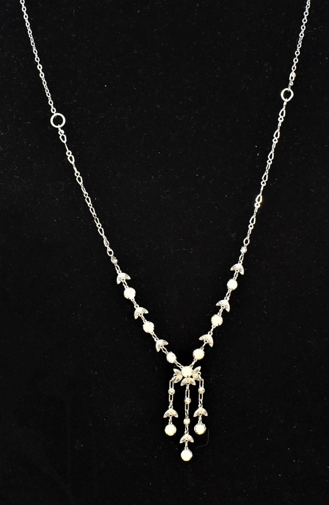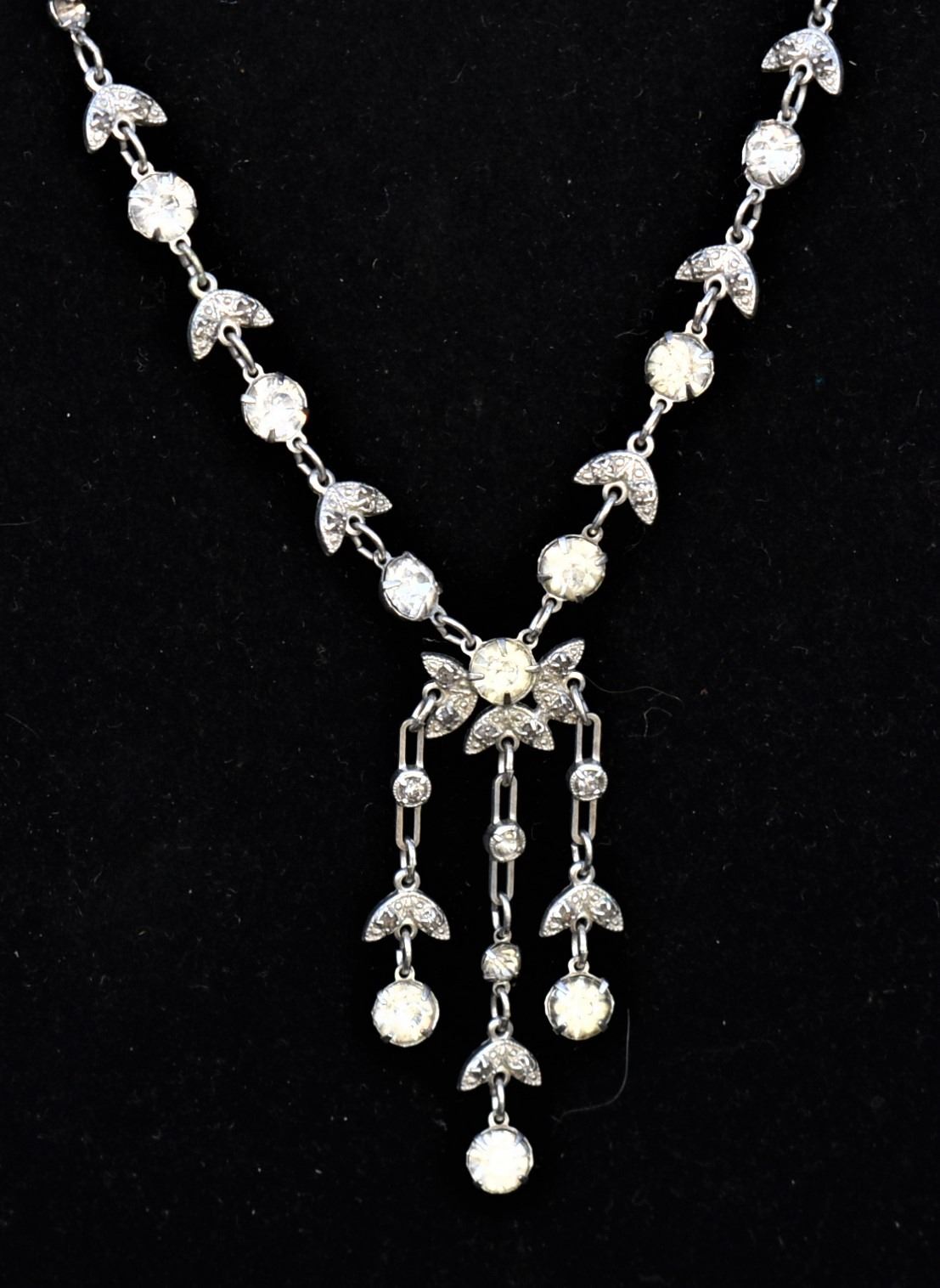 Estate Sterling & Faceted Rhinestone Necklace, measures 26''L end to end with a 1.5'' drop pendant
