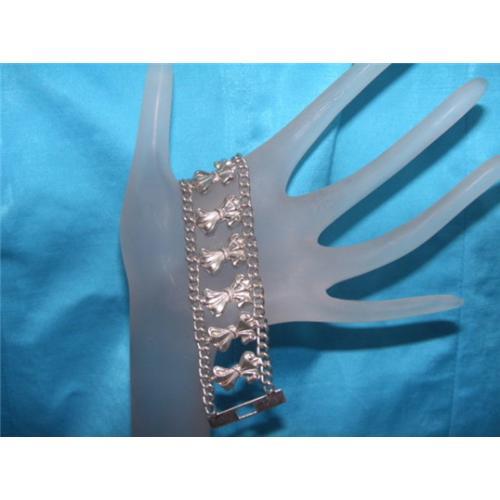 <tr><td>Title:Estate Sterling Silver Bows Link Bracelet</td></tr>