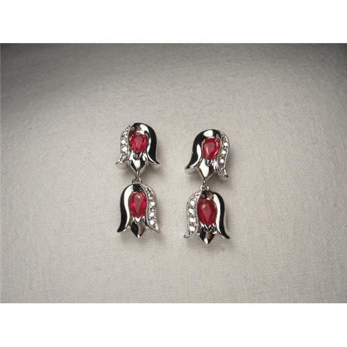<tr><td>Title:Estate White Gold Ruby Diamond Tulip Earrings</td></tr>