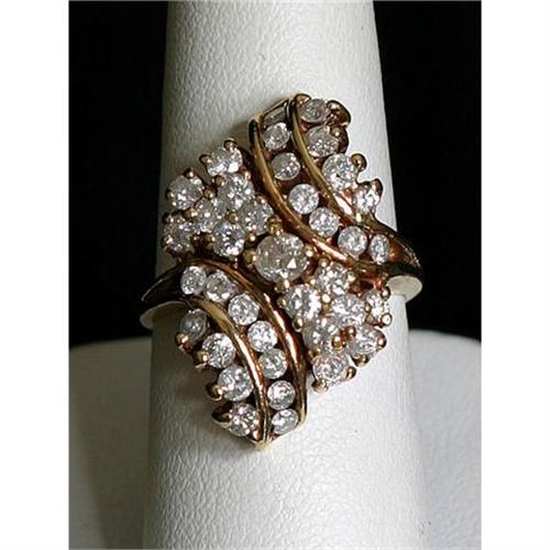 Many of you know me from my five years of national jewelry television shows, Estate Jewelry with Sam and Lisa and Jewelry and Collectables with Lisa. Now I am honored to present these beautiful antique and estate finds to you through Go Antiques. Here is an very unique Diamond swirl ring. There are 37 round brilliant diamonds in this 10k yellow gold ring, approx 1ctw. The ring weighs 7.5 grams and is size 7. Free sizing is available on gold and silver rings within two sizes. If you bid on this piece and do not win it, please visit my online store by clicking vendors items above to see if it is still available for direct sale or offers. .