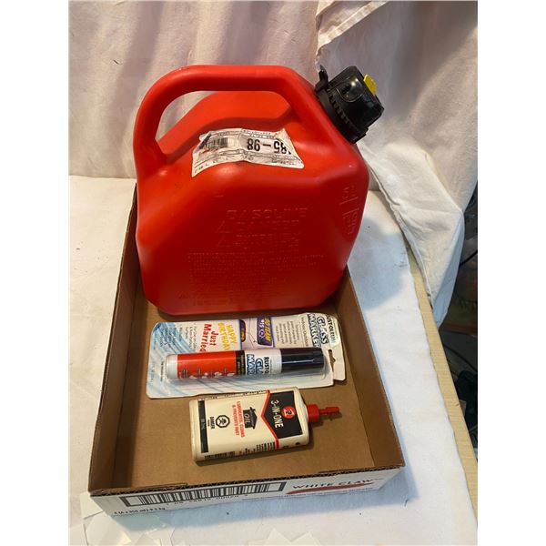 Gas can, glass marker and multi purpose oil