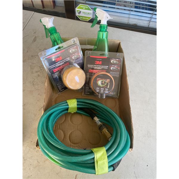 Headlight restoration system, air hose and spray bottles