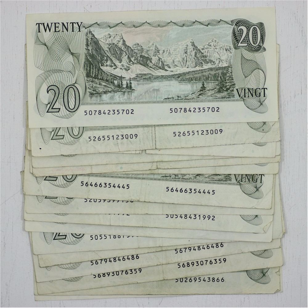 Estate lot of 17 x 1979 $20.00 notes with various signatures.