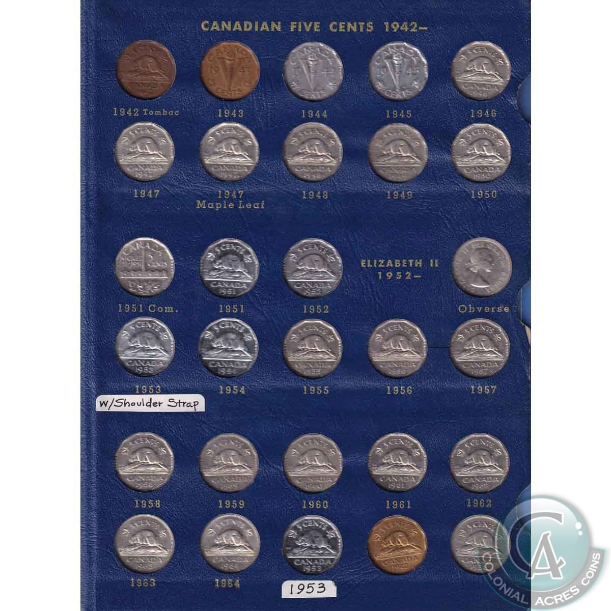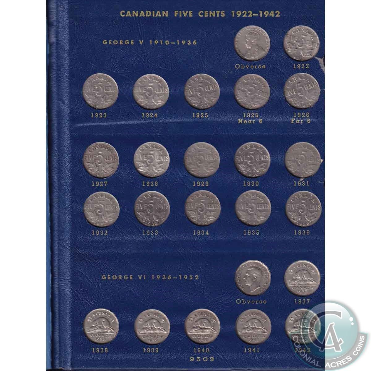 Estate lot of 1922-1964 Canada 5-cent Collection in Vintage Whitman Folder. You will receive one of each date as well as varieties for some years. 1926 Far 6 is scratched. 53pcs