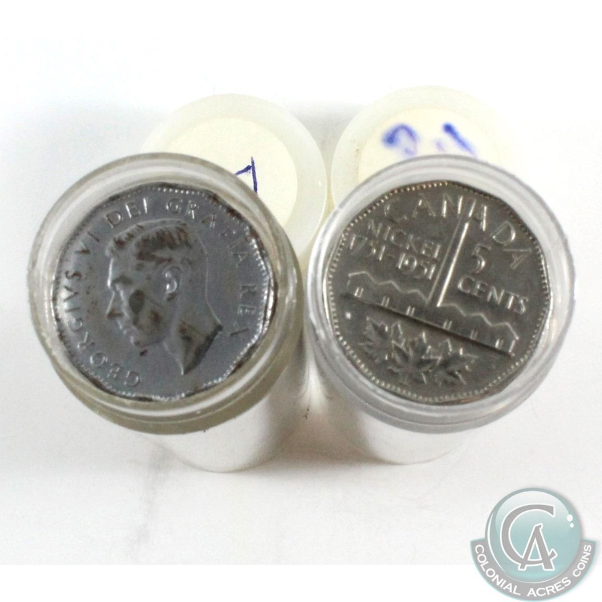 Estate lot of 1951 Steel Beaver and refinery commemorative 5ct rolls. It appears that the steel coins have some rust on the edges. 2 rolls. Sold as is.