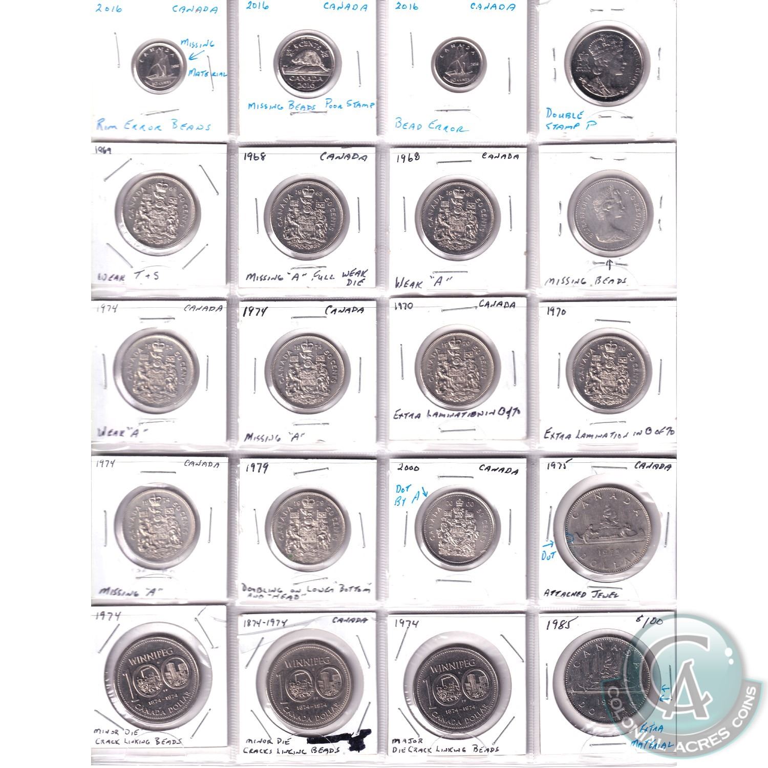 Estate lot of 20x Canada minor error & verities 5-cent, 10-cent, 50-cent & Dollars. 20pcs
