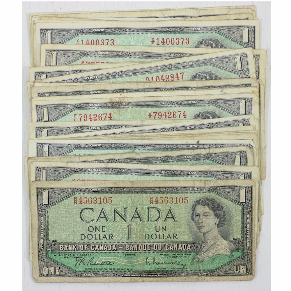 Estate lot of 45 x 1954 $1.00 notes with various signatures.
