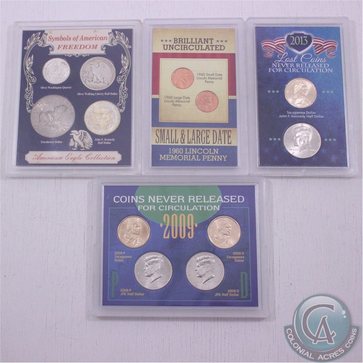 Estate lot of 4x 1960-2013 United States Commemorative Coin Sets. The dates you will receive are: 1960 , 1964, 2009 and 2013. (4 sets)