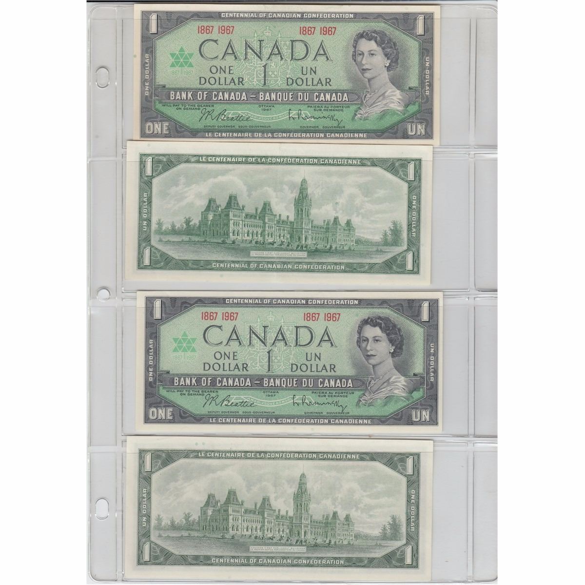 Estate lot of 4x Canada 1867-19687 Centennial $1 Banknotes