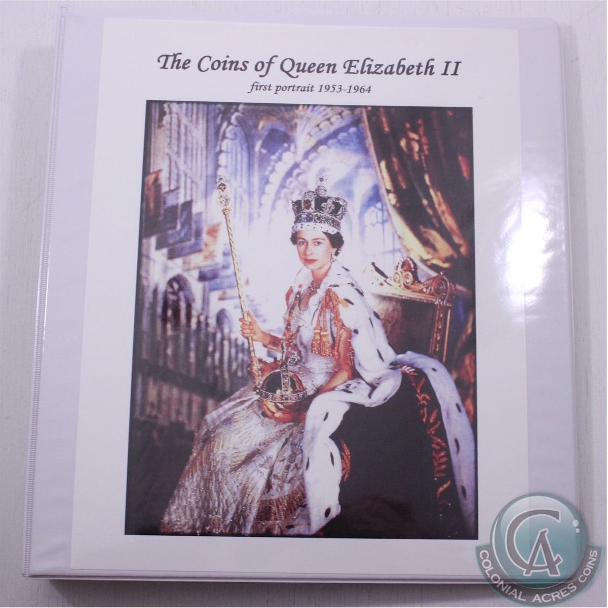 Estate lot of 50x Queen Elizabeth II Canadian 1c, 5c,10c,25c, 50c and Silver $1 coins in white display folder. This lot includes the following coins and dates: 8x Silver dollars 1953,1954,1957,1959,1962,1963, and 1964, 4x silver 50-cents 1958,1961,1962, and 1963, 7x 25-cent; 1953,1954,1956,1957,1962,1963,and 1964,11x 10-cents;1953,1954,1955,1956,1957,1958,1959,1960,1962 and 1963, 10x 5-cents: 1953,1954,1956,1958,1959,1960, 1962,1963,and 1964, 11x 1-cents; 1953,1955,1956,1957,1958, 1959,1960,1961,1962,1963, and 1964. please view scan. No return.