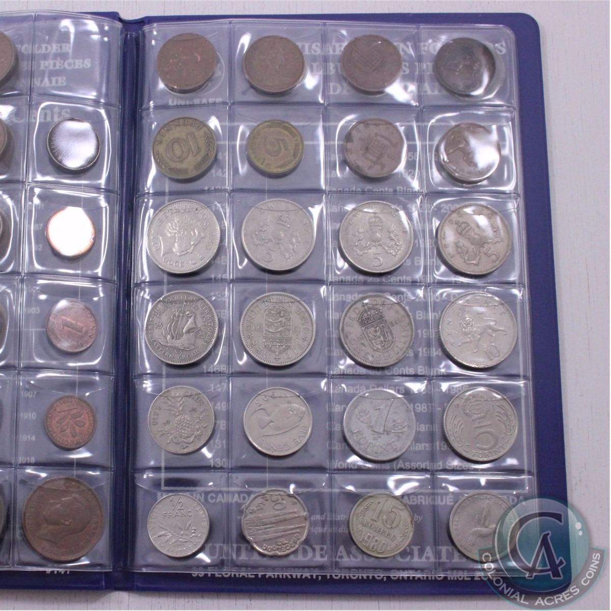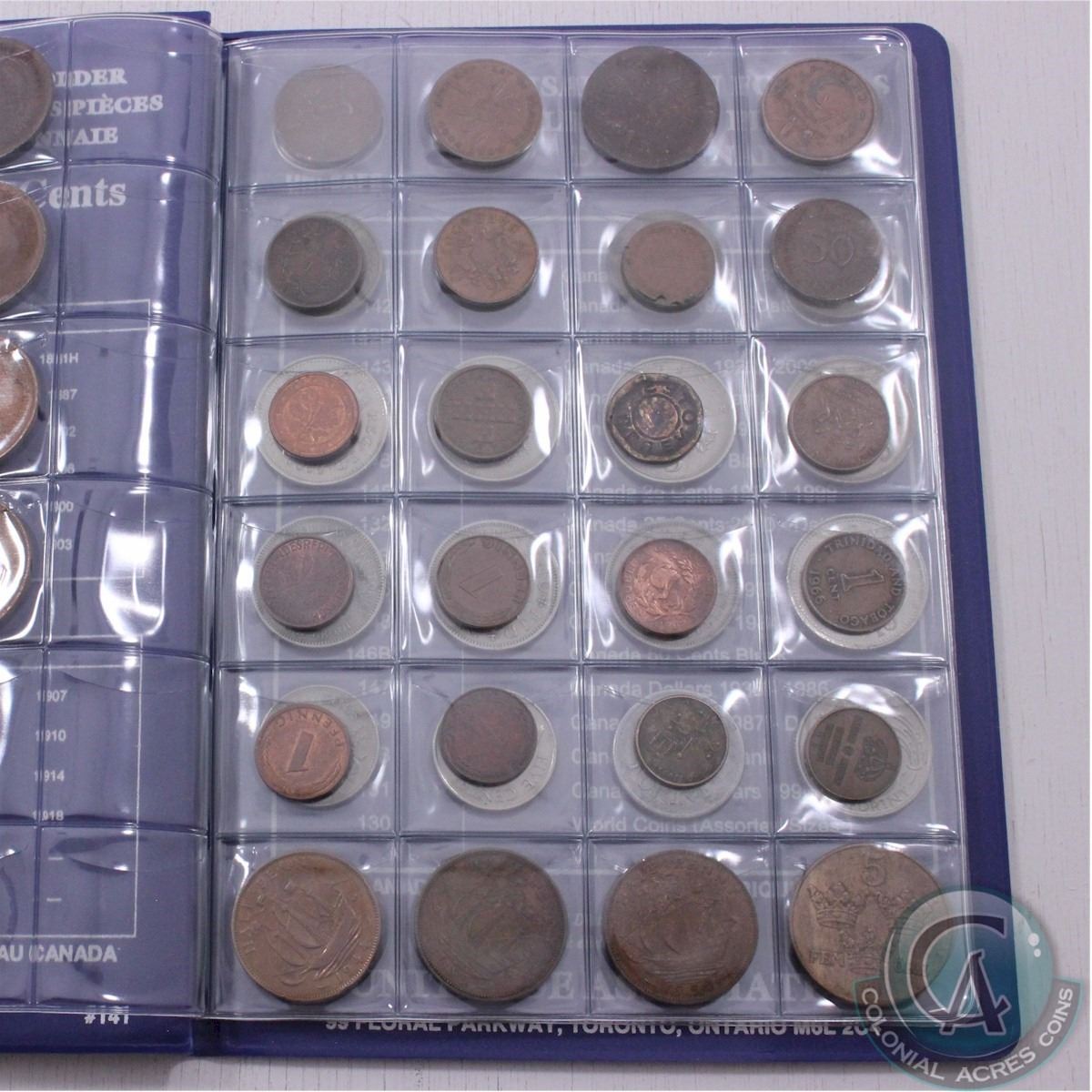 Estate lot of 66x coins from around the world in blue unitrade folder. You will receive coins from such countries such as Canada, Great Britain, Russia, France, Barbados and more. Oldest date 1876. (66 coin total) please view scan. No return.