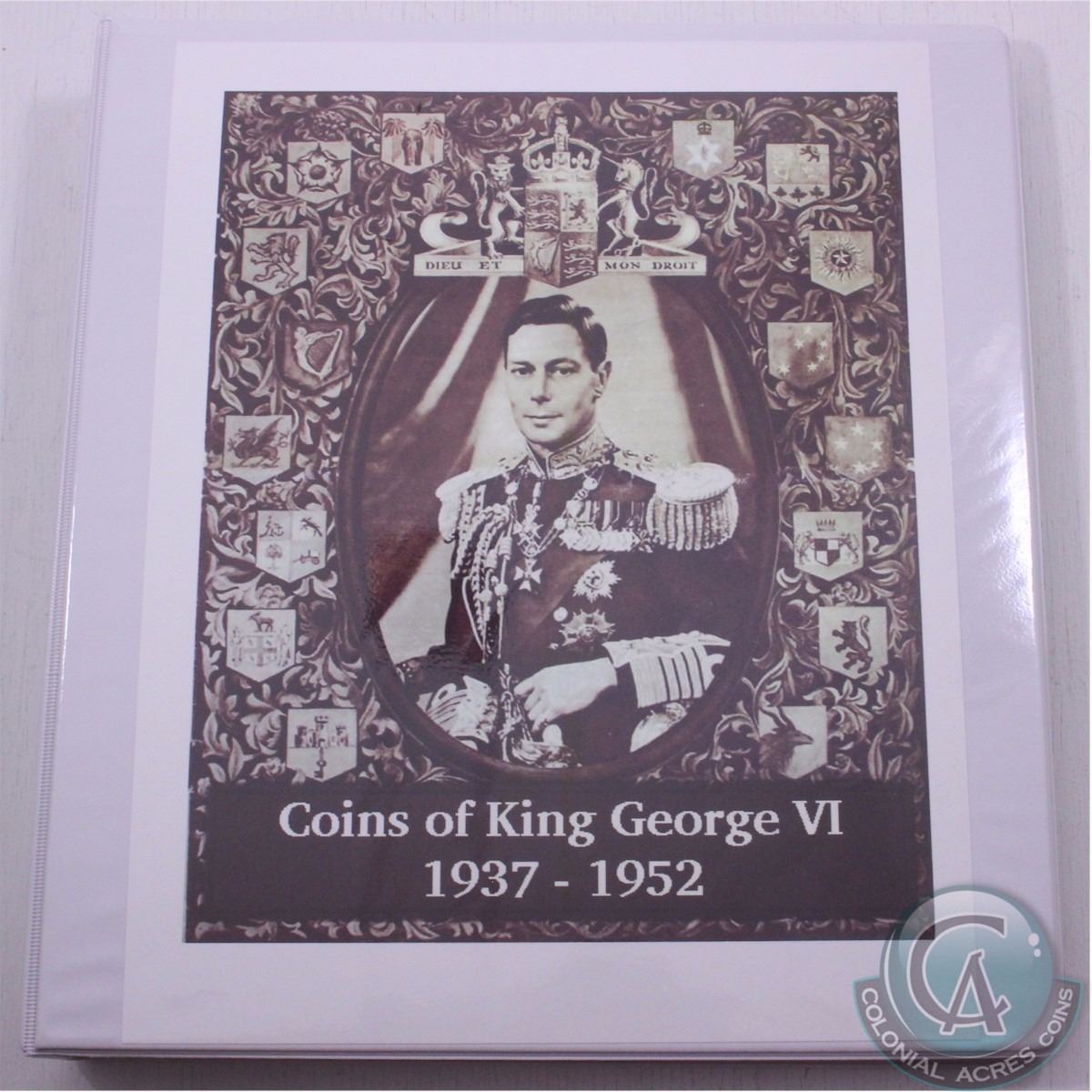Estate lot of 80x Canadian George VI 1c ,5-cent,10c,25c, 50c and Silver $1 Coins in white display folder. This lot includes: 2x silver dollar: 1951,1952, 11x Silver 50-cents: 1940,1941,1942,1943,1944,1945,1946,1949,1950,1951, and 1952. 14x 25-cents : 1940,1941,1942,1943,1944,1945,1946, 1947,1974 ML,1948,1948,1950,1951, and 1952. 16x 10-cents: 1917,1938,1939,1940,1942,1943,1944,1945,1946,1947,1947ML,1948,19491950,1951,and 1952. 19x 5-cents: 1937 dot, 1938,1939,1940,1941,1942,1942 tomac,1943 tombac, 1944 victory, 1945,1946,1947,1947 ML,1948,1949,1950,1951 refinery, 1951 and 1952, 17x 1-cents: 1937,1938,1939,1940,1941,1942,1943,1944,1945,1946,1947,1947 ML, 1948,1949,1950, 1951, and 1952. this lot also includes 1x 1939 Bronze Medallion commemorating the visit of King George VI to Canada. please view scan. No return.