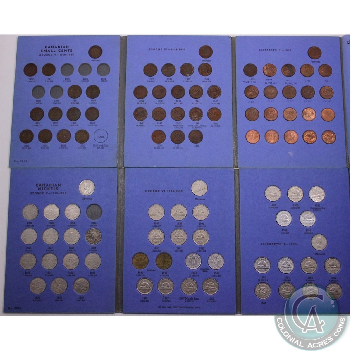Estate lot of Canada 1-cent and 5-cent blue Whitman books. 1ct has 1920 to 1972 (missing 1922 to 1926), 5ct has 1922 to 1960 (missing 1925). 2 books