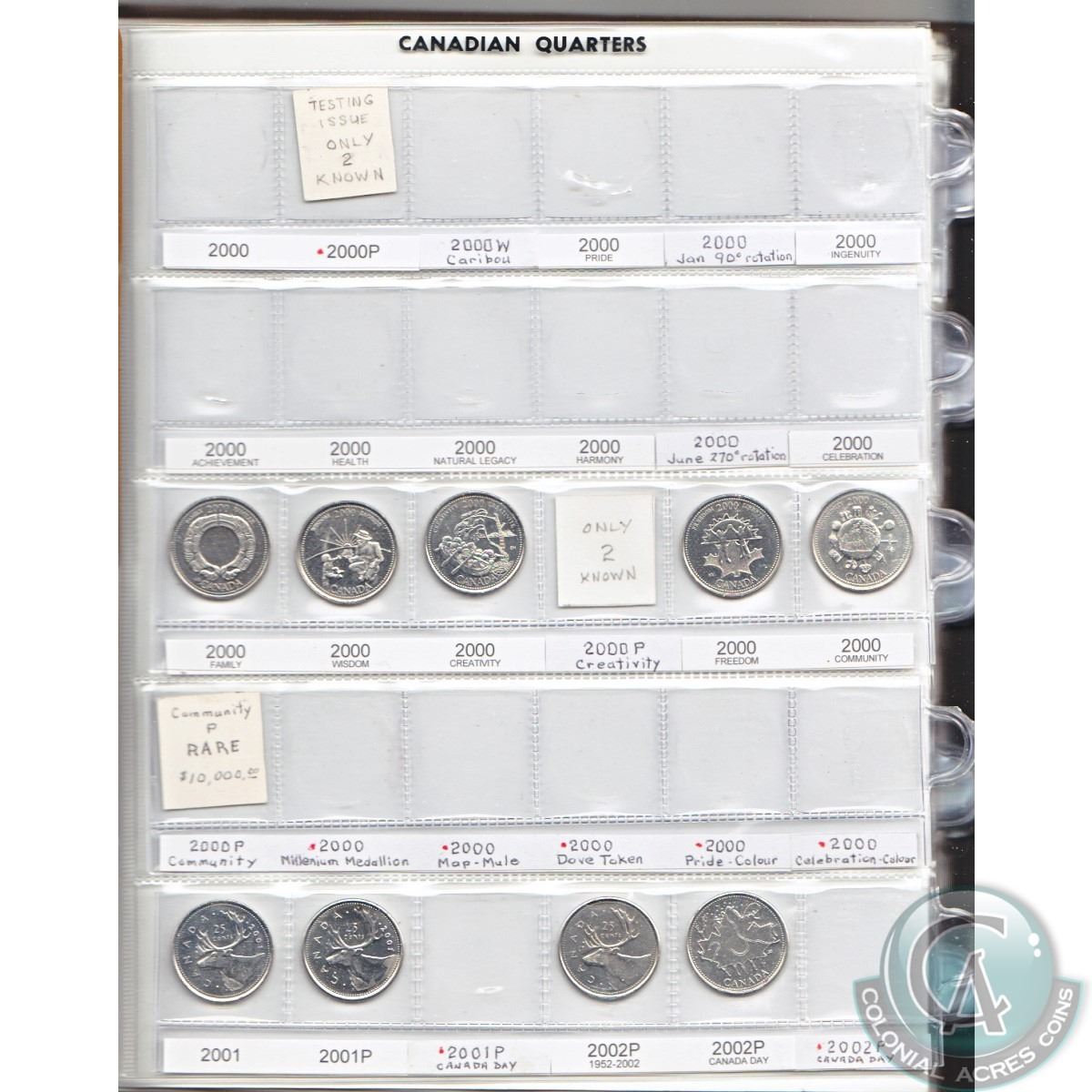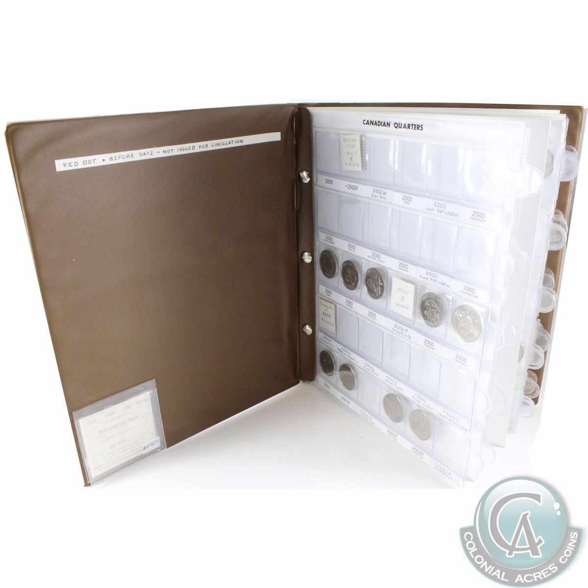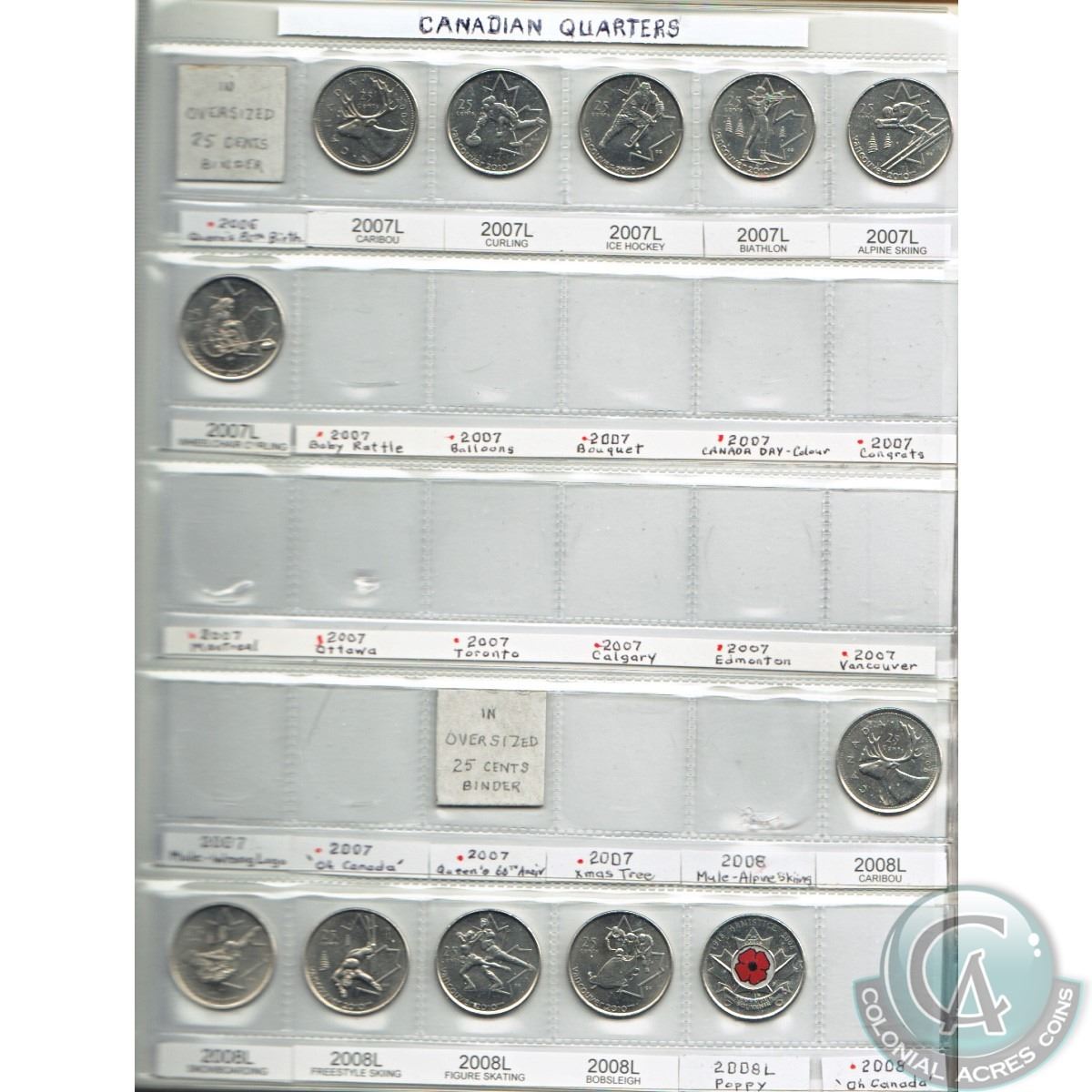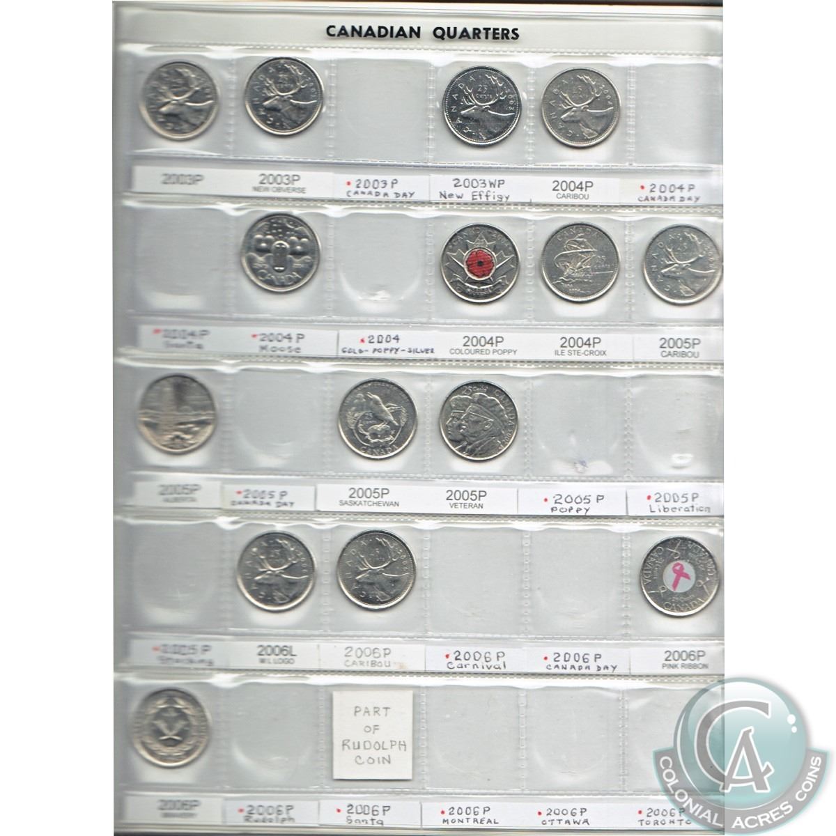 Estate lot of Canada 25cts from 2000 to 2016, most coins are commemorative, some are coloured. Comes in a brown folder and also includes the 2000 Moose 25ct plus many other commemoratives. 72pcs.