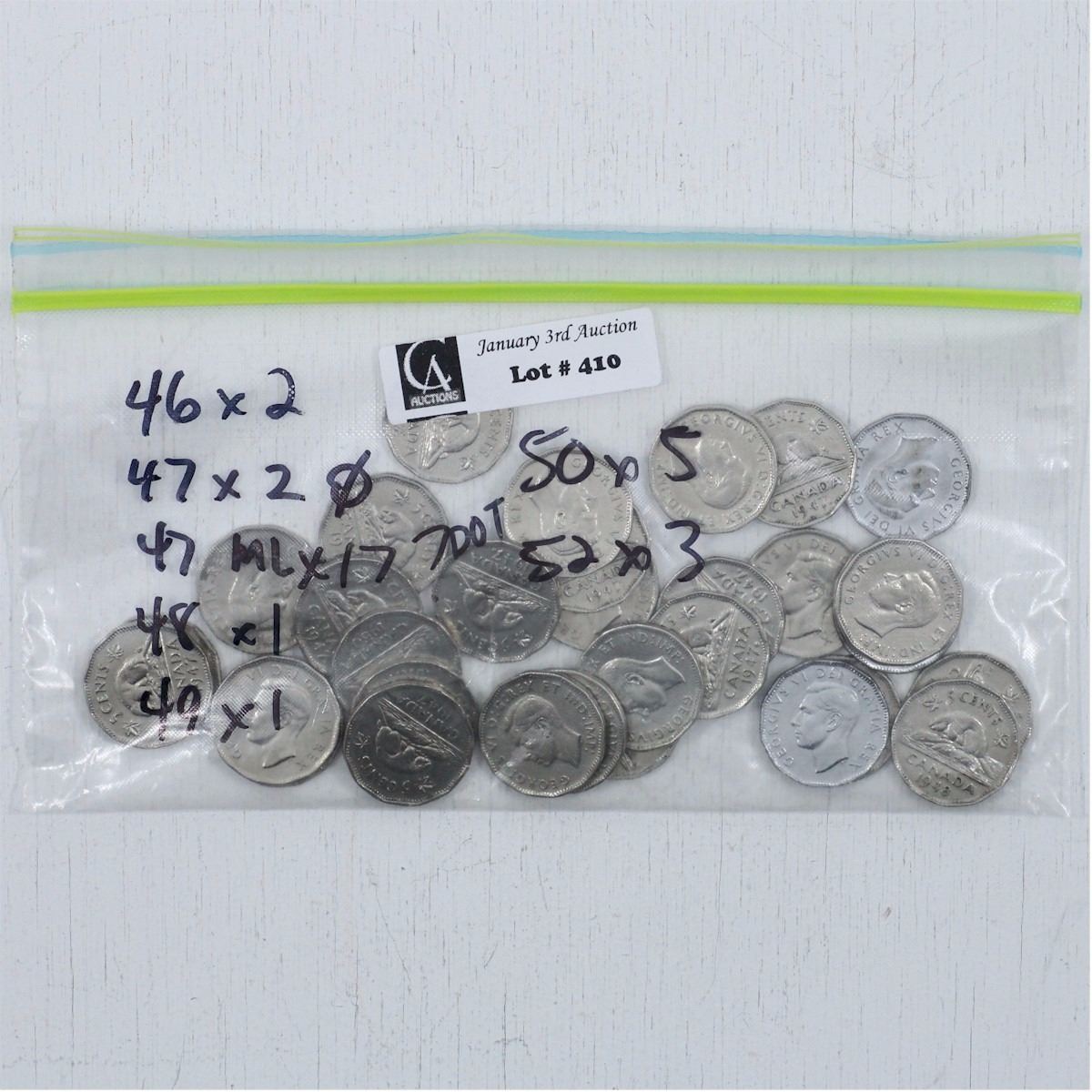 Estate lot of Canada George VI 5ct's dated 1946 to 1952 as indicated on the bag. Sold as is.
