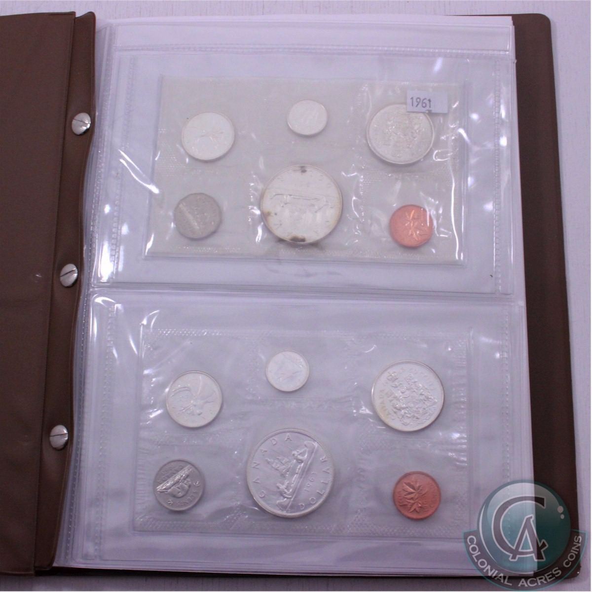 Estate lot of Canada RCM Proof-like Uncirculated sets 1961-1986 in Uni-safe Folder. The dates in this set includes: 1961,1963,1964,1965,1966,1972,1975,1984,1985, and 1986. ( 10 sets total) please view scan. No return.