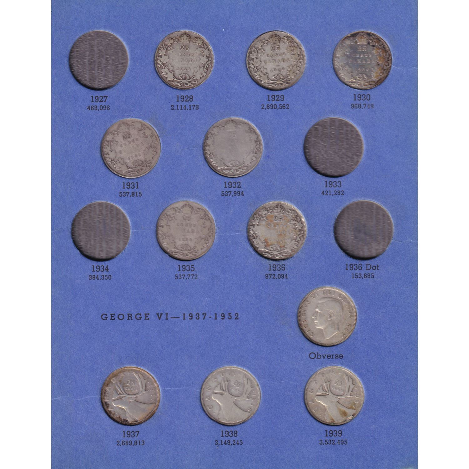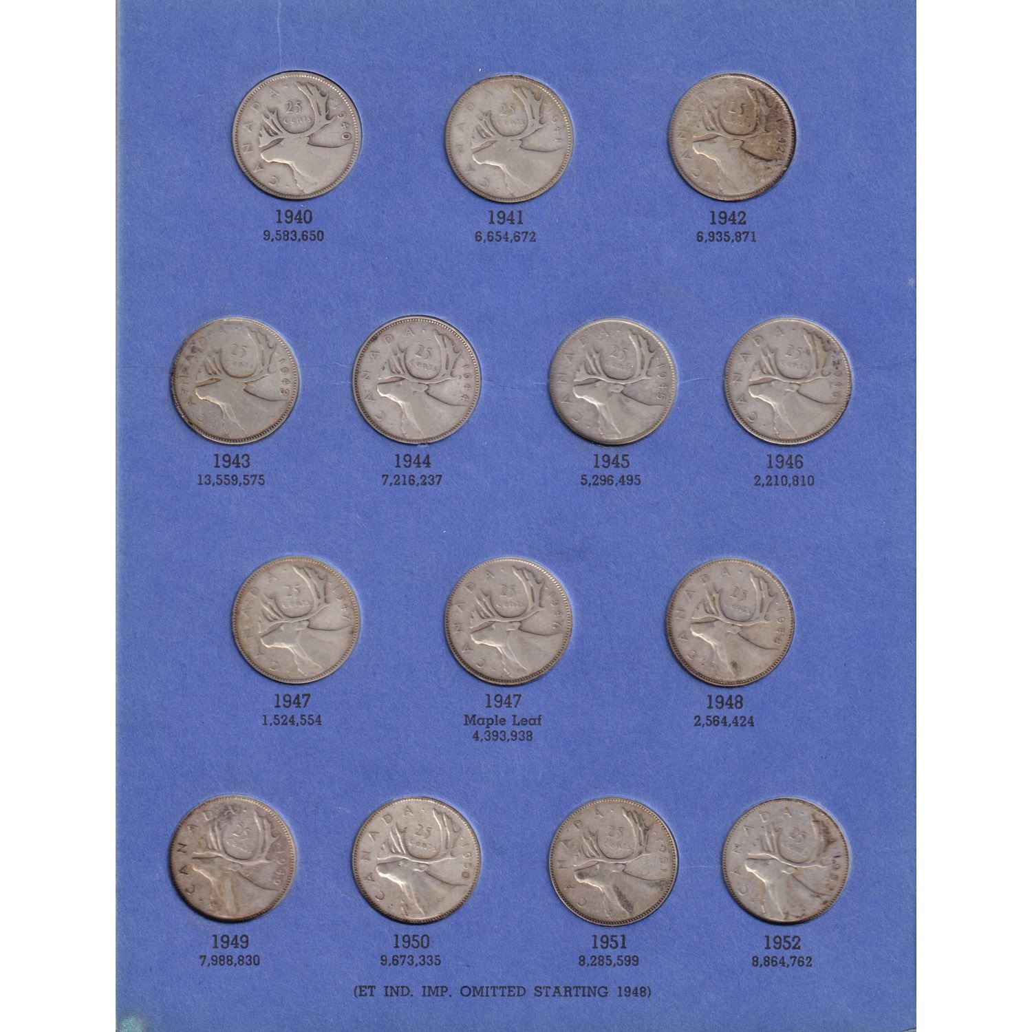 Estate lot of Canadian Silver 25-cents dated between 1912-1952. you will receive 33 coins dated between 1912 & 1952.
