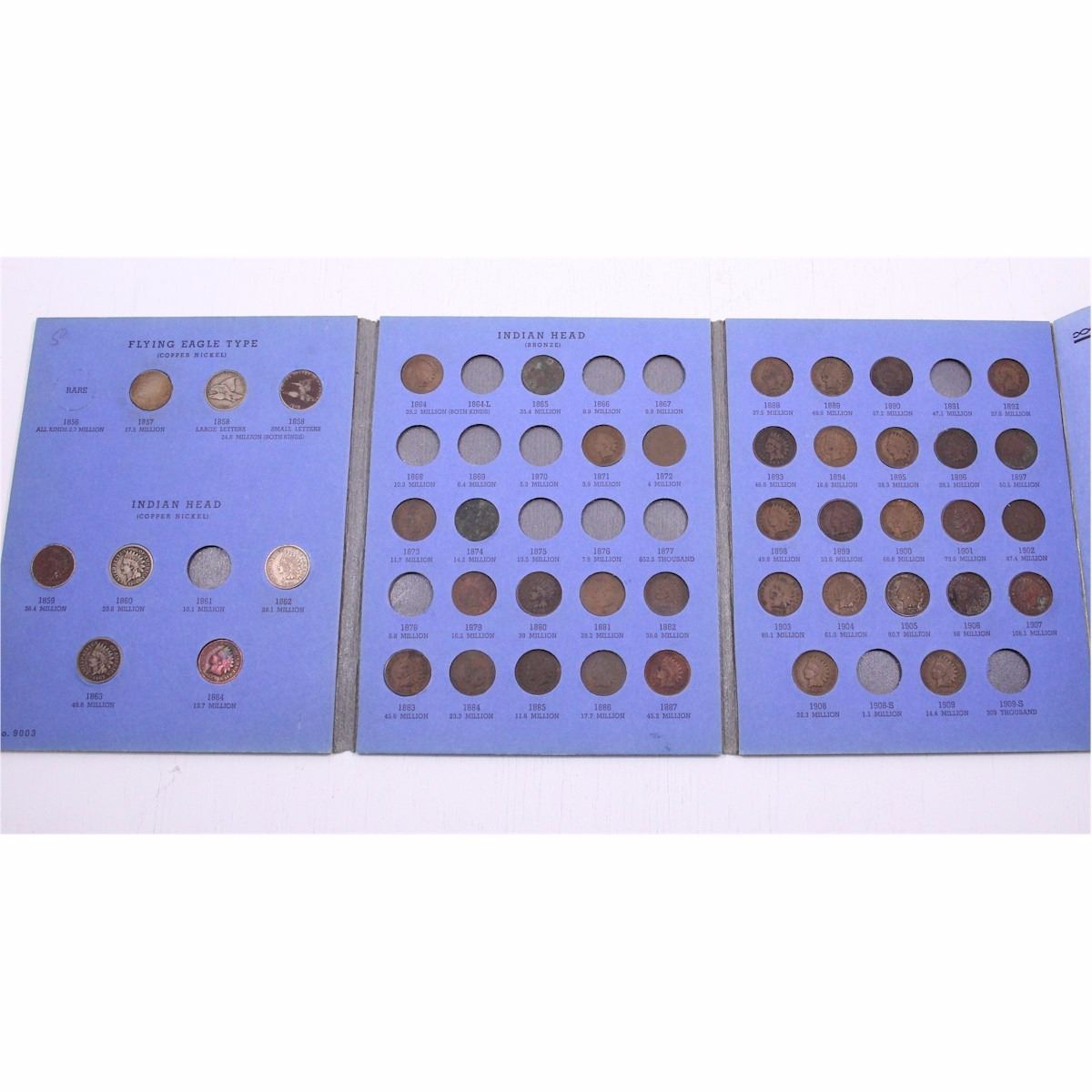 Estate lot of USA Flying eagle and Indian Head Cents in old Whitman blue book. The dates range from 1857 to 1909. 44pcs