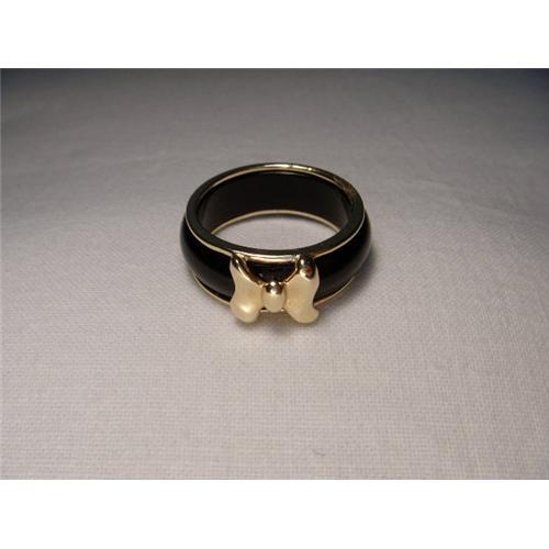 <tr><td>Title:Estate14K YG Gold Insertable Onyx Bow Band Ring</td></tr>