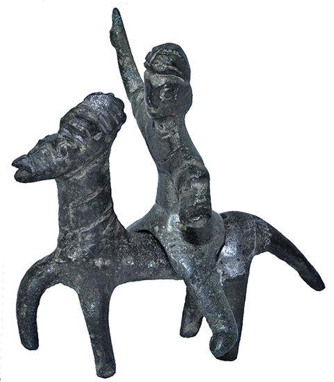 Estatuilla de héroe jinete tracio. Siglos II-III d.C. Bronce fundido completo. Provincial romano. Altura 5,0 cm.