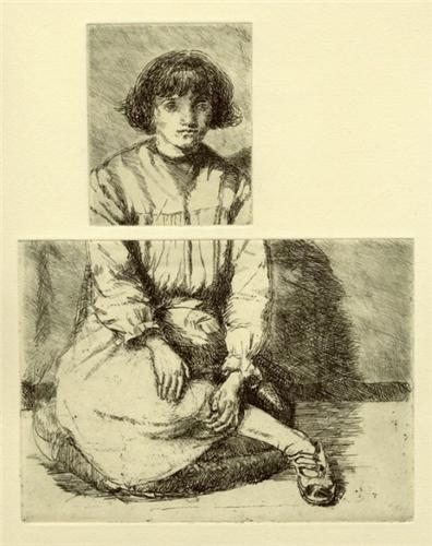 FOLIO OF ETCHINGS (20) etchings on cream wove paper <BR>18 by 13cm., 7 by 5in. Sizes vary from 3 by 2.25 inches (James Starkey's bookplate) up to 7 by 5 inches (Moppie Morrow). Other subjects include Carlisle Court with Street Vendor, portrait of Maurice