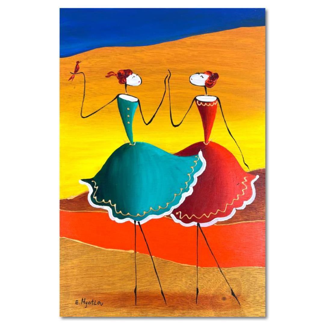 This is an original painting oil on wood panel by Ester Myatlov. Hand signed by the artist, this piece comes with a letter of authenticity. Measures approximately 12" x 8" (image).