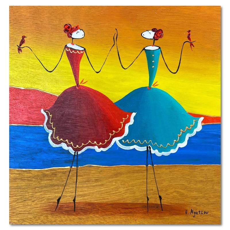This is an original painting oil on wood panel by Ester Myatlov. Hand signed by the artist, this piece comes with a letter of authenticity. Measures approximately 10" x 10" (image).