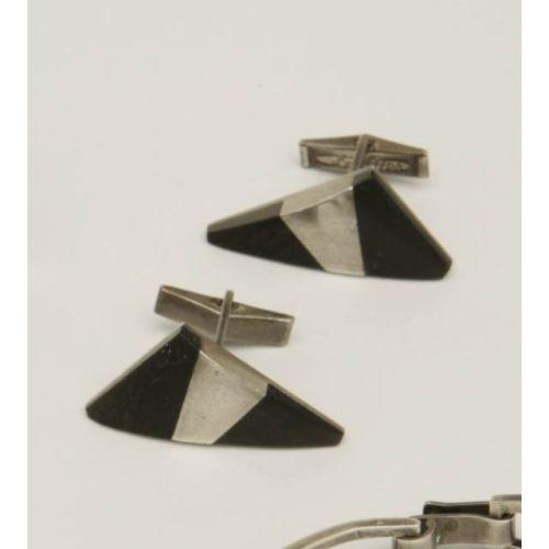 Artist Name: Esther Lewittes<BR>Manufacturer: <BR>Description: Cufflinks<BR>Circa: Executed circa 1950<BR>Medium: Sterling and Ebony<BR>Signature: Stamped "Lewittes Sterling"<BR>Measurements: <BR>Edition: <BR>Notes: <BR>Literature / Provenance: