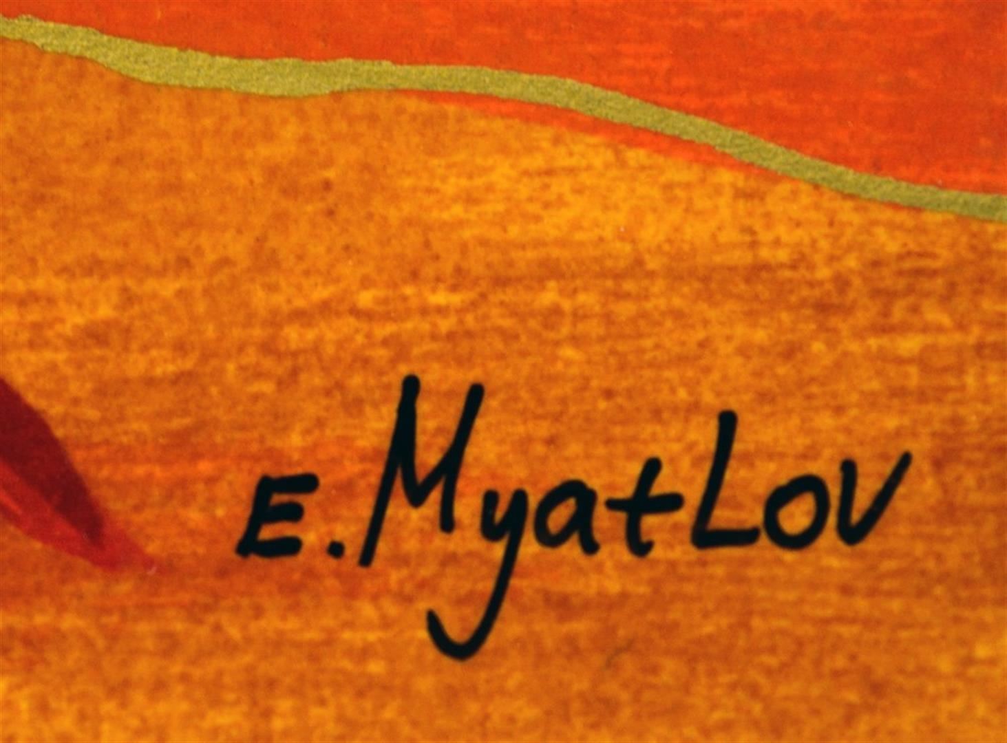 Artist: Esther Myatlov - Title: Especially for You - Medium: Serigraph on Fine Art Paper - Signature: Hand-signed by the Artist - Limited Edition: AP 45 - Paper Size: Approximately 8.75 inches x 6.75 inches - Framed: Unframed - Details: This work comes with a Certificate of Authenticity - Esther Myatlov Achieves A Strong Illumination Of The Painting From Deep Within. She Then Uses Fiery Colors And Unambiguous Contours To Convey A Joyous Atmosphere, With An Ethnic-mythological Flavor.