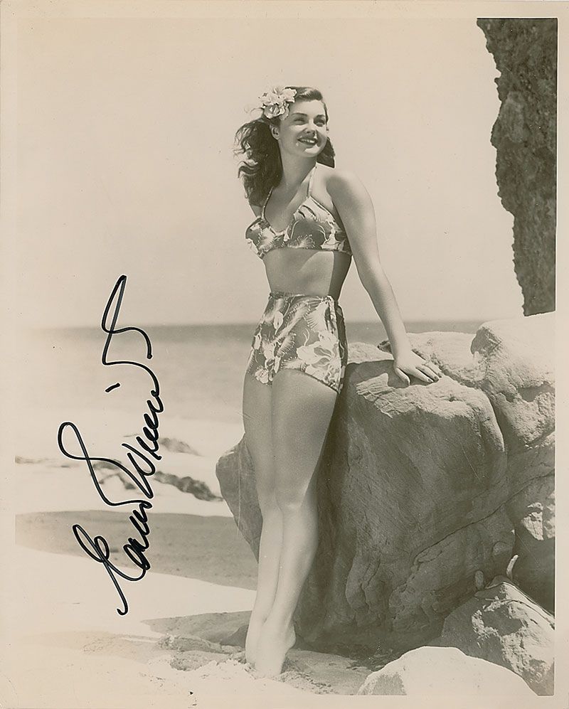 Lovely glossy 8 x 10 photo of a young Williams posing at the beach, signed vertically in black felt tip. In fine condition.