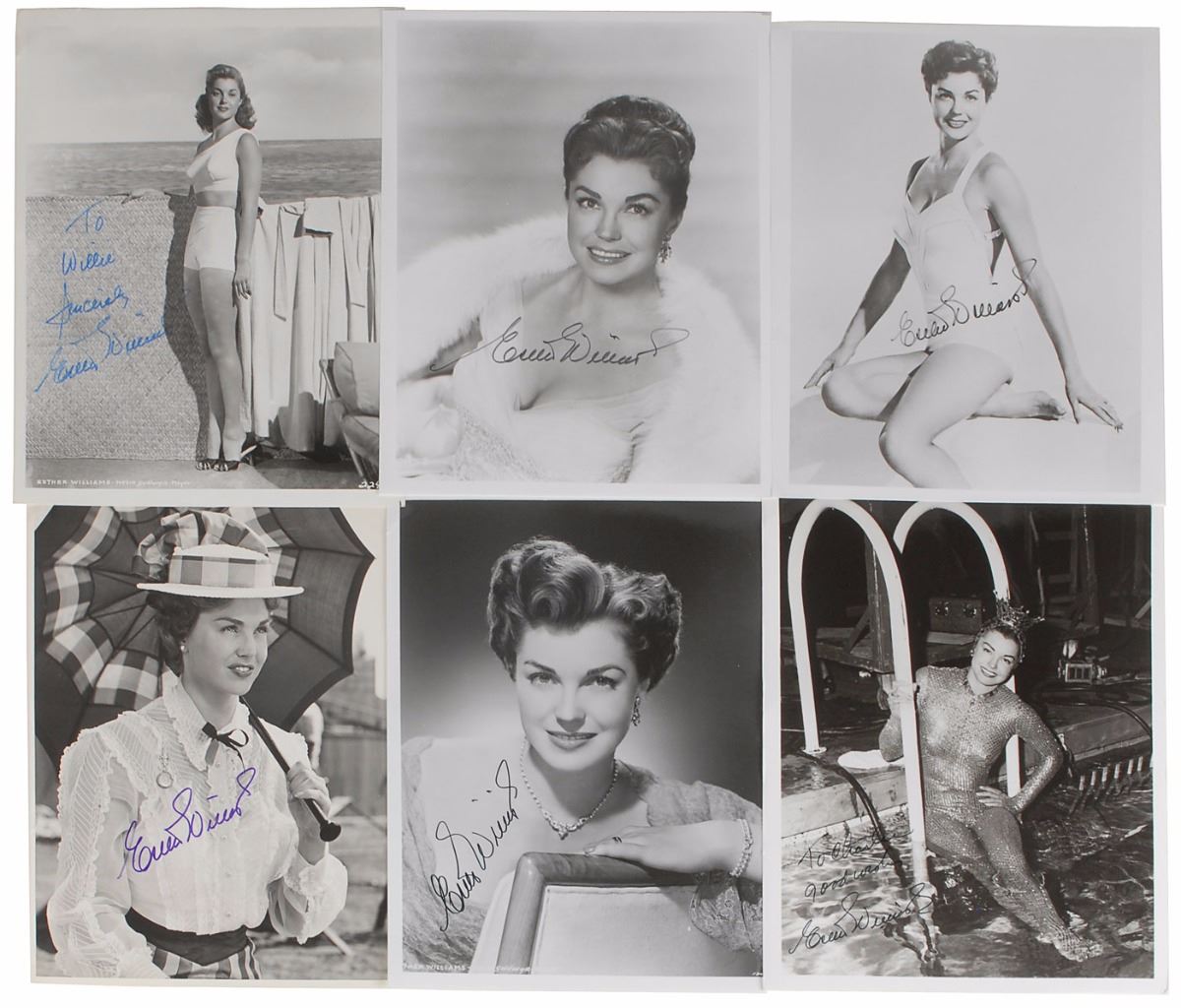 Sextet of glossy photos showing the lovely leading lady, ranging in size from 7.5 x 10 to 8.25 x 10, each signed in felt tip by Williams, with two inscribed. In overall very good to fine condition.