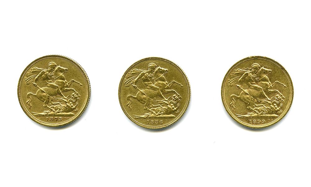 Ouro - Libra 1873 M (KM 7), Libra 1886 M (KM 7), 1899 M (KM 13)