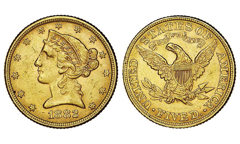Ouro 5 Dollars 1882 MBC+