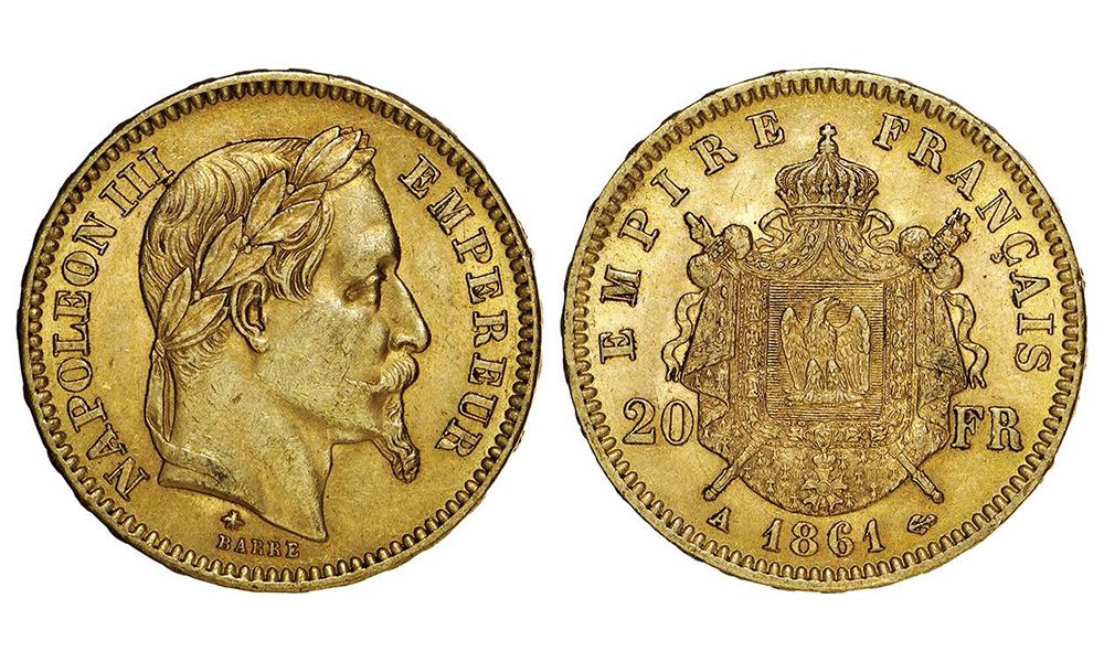 Ouro 20 Francos 1861 A MBC+