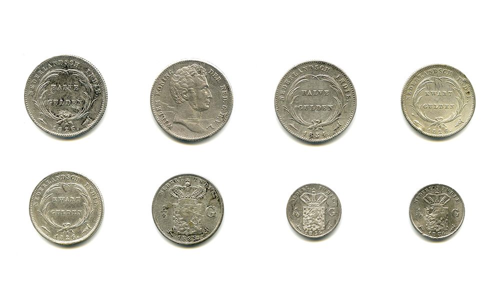 1/2 Gulden 1826, 1834 (x2) (KM 302); 1/4 Gulden 1826 (x2), 1834 (KM 301.1); 1/4 Gulden 1885, 1896 (KM 305); 1/10 Gulden 1854, 1882, 1884 (KM 304); 2 1/2 Cents 1857, 1858, 1898 (x2), 1899, 1902, 1909, 1913 (KM 308); 1 Cent 1856, 1857 (x2), 1858, 1859, 1896, 1897, 1898, 1908, 1912 (KM 307.2); 1/2 Cent 1857, 1858, 1859, 1860 (KM 306)