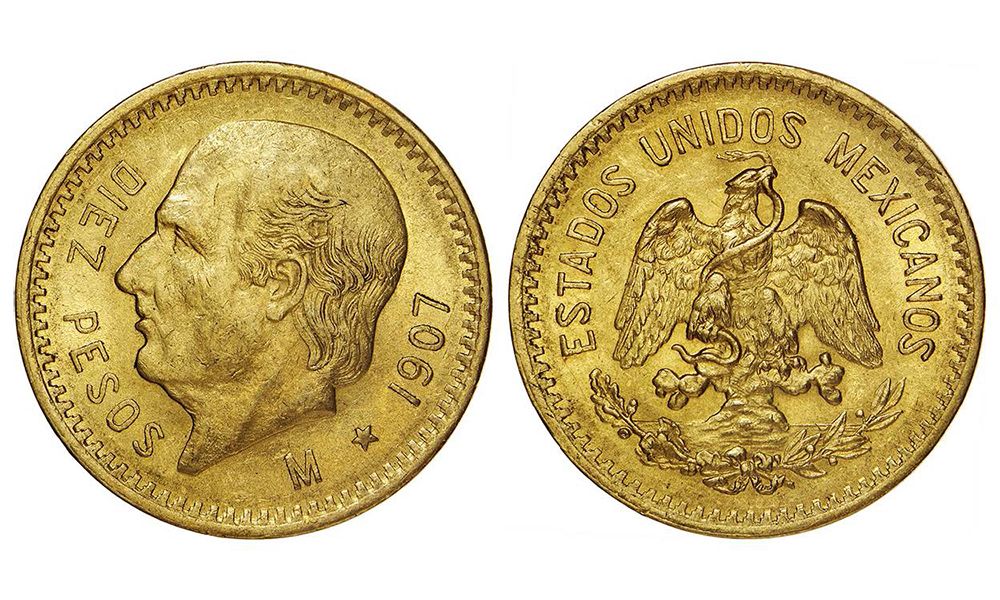 Ouro 10 Pesos 1907 MBC