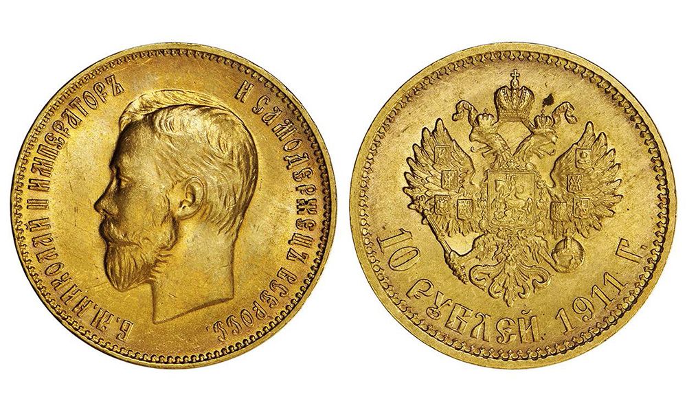 Ouro 10 Rublos 1911 BELA