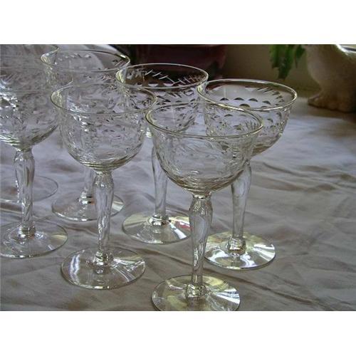 Lovely set of 8 etched, blown stems in excellent condition with no nicks, chips or cracks.