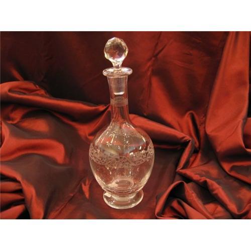 Beautiful etched French crystal decanter with crystal stopper.</em></td>