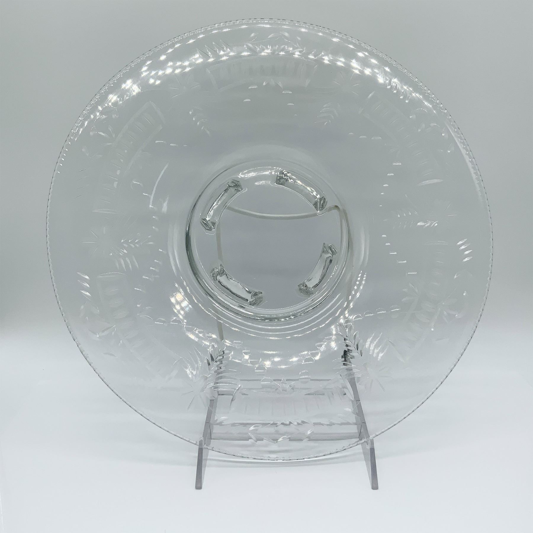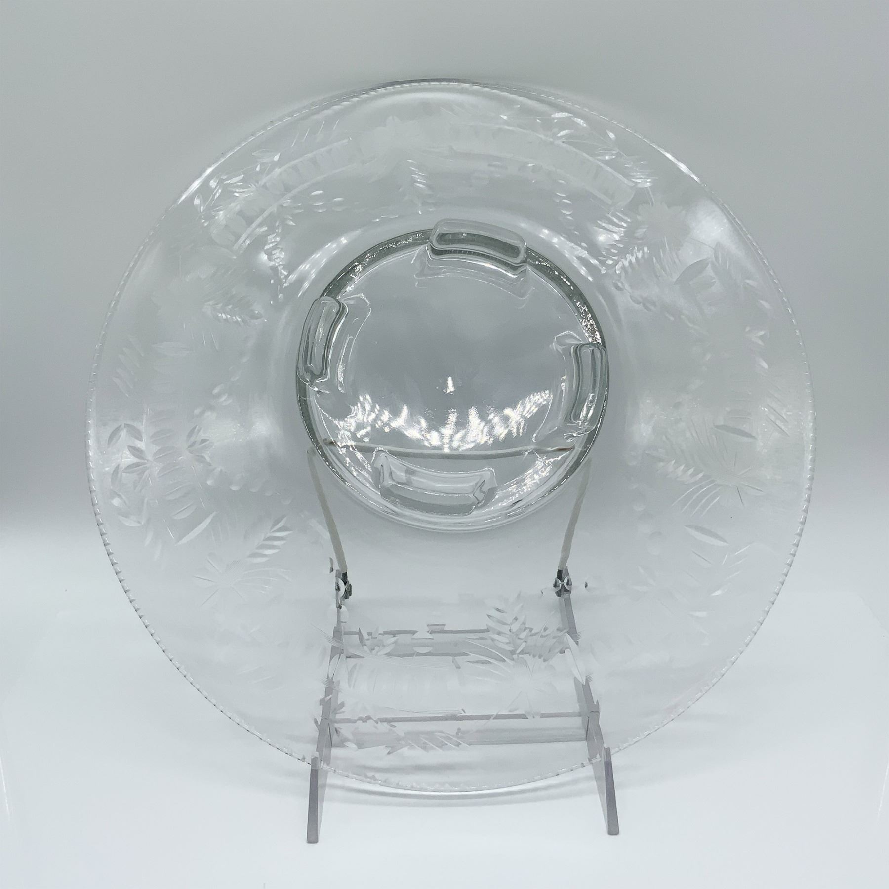 Etched Glass Centerpiece Plate, Floral Design