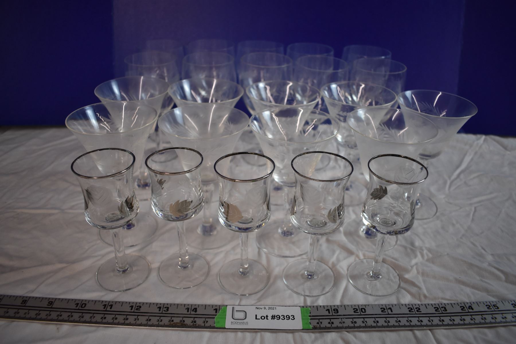 Etched Glass Stemmed Cups