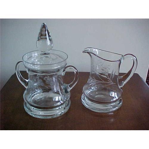 <tr><td>Title:Etched Glass Sugar & Creamer</td></tr>