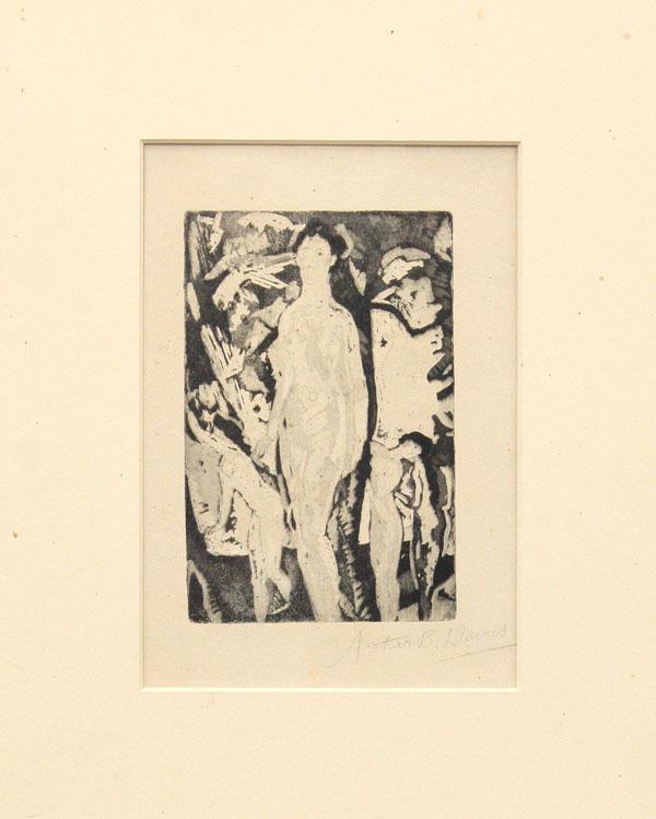 Unframed etching, ''Tartessians'', by Arthur Davies (American, 1862-1928), signed in pencil lower right ''Arthur Davies,'' sight: 5''h x 3.25''w, overall: 10''h x 8''w. Provenance: Harbor Gallery, New York