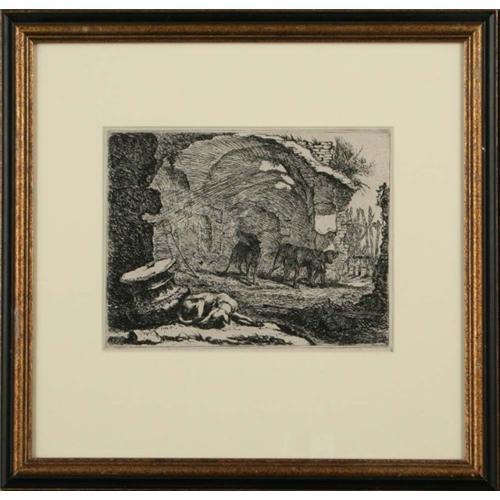 Etching entitled ?Dogs in the Alley?. Signed (1682)