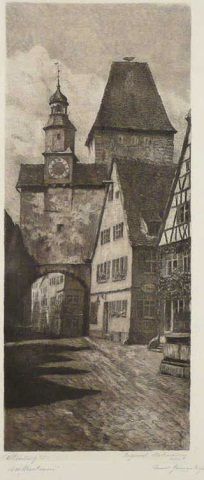 Etching, Unknown, European Street Scene, Signature is Illegible, 15 1/2" x 6 1/2",Signed Lower Right