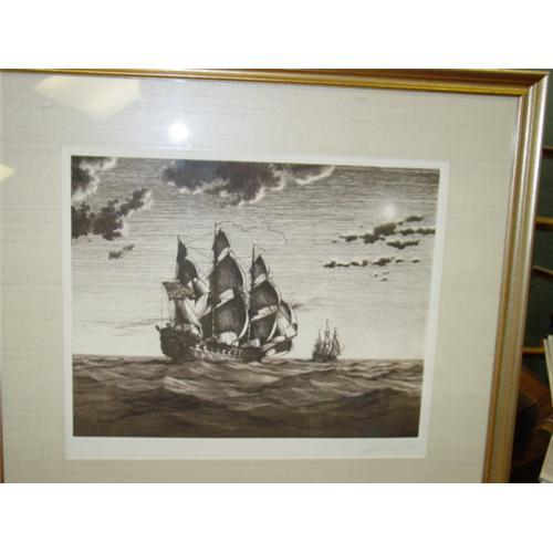 <table width="100%" border="0" cellspacing="0" cellpadding="4"><tr><td><em> </em></td></tr><tr> <td width="100%"> Certificate of Authenticity to certify that ?Prepare to Engage? by L.J. Pearce is an original etching hand pulled from the copper master plate by the artist. It further certifies that this work was hand signed by Mr. Pearce and issued in a limited edition exclusively to registered Franklin Mint Collectors. 1979. Depicts Caption John Paul Jones gallantly leading his men to victory in the most dramatic engagement of the Revolutionary War on September 23, 1779. Please furnish zip code for shipping quote. Thanks! </td></tr><tr> <td> </td></tr><tr> <td>Reference #: 0404014</td></tr><tr><td>Condition:Excellent</td></tr><tr><td>Year:1979</td></tr><tr><td>Title:Etching Limited Edtion PREPARE TO ENGAGE </td></tr><tr><td>Location:Florida</td></tr></table>