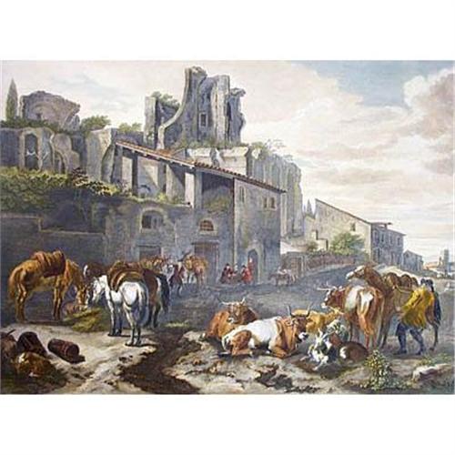 Title: Farm Yard. Size (in.): 19 x 24. Artist: de Layer, Peter. Engraver: Canot, P C. Item No. F155-0Category: Views/LandscapesThese are newly hand-water-colored restrikes of historical works of art using the original antique printing plates and are the same authentic, hand made images that you would find in the finest homes and galleries around the world. These are not the mass produced images labeled 'Prints' that you might find at shops or art shows, priced far less. Those images are generally only photos, a poster of the work of art. As such, please allow 4-6 weeks for delivery from England. EU residents must add 17.5% VAT. Image Copyright Thomas Ross Ltd. Binfield, England #TR#