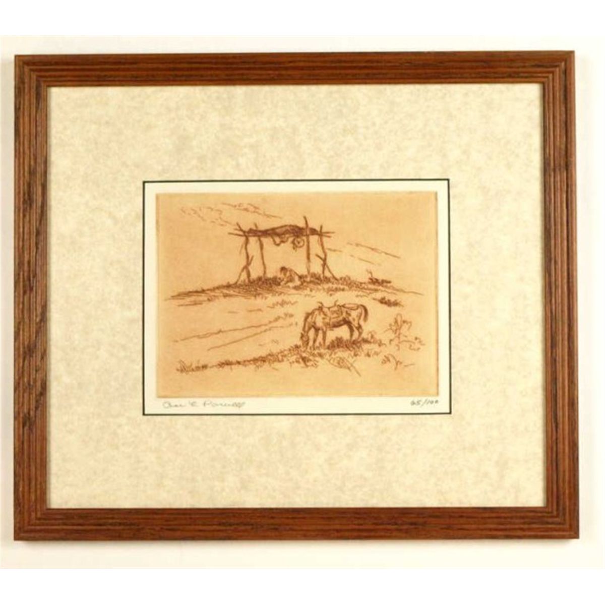 Etching by Ace Powell #65/100 signed lower left, 5 1/2" X 7 1/2".