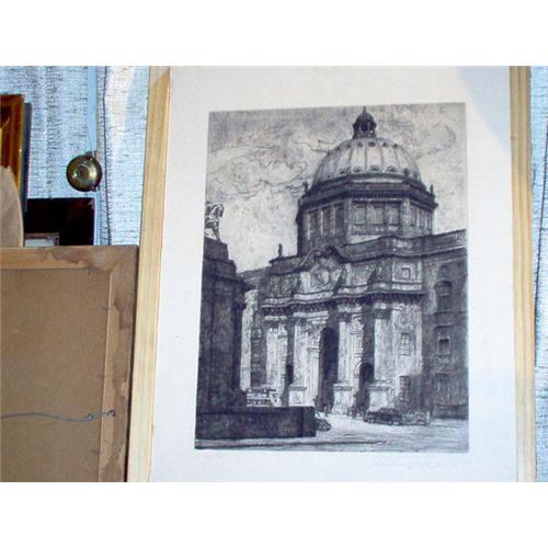 The Palace of Berlin etching. I think this is a great etching from the early 1900's. It is signed lower right, but the signature is illegible to me. Minor creasing in margins. The Palace was destroyed sometime during WWII and is scheduled to be rebuilt in 2008.