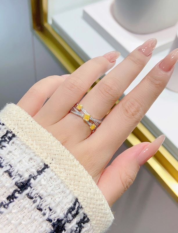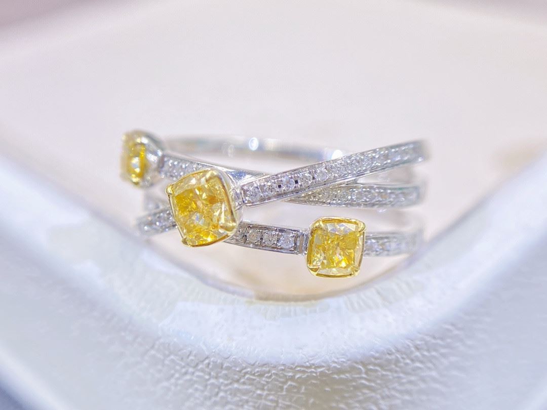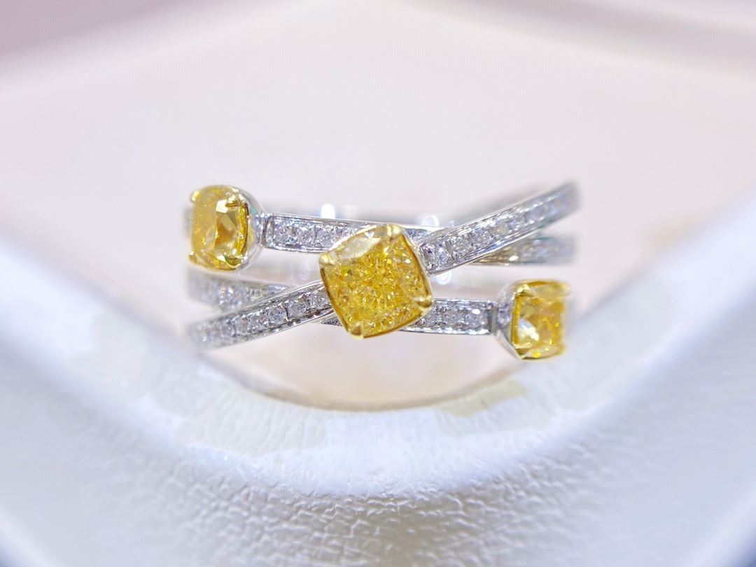 Three radiant yellow diamonds intertwine gracefully, adorned with delicate white diamonds. Like a beam of gentle light encircling the finger, it symbolizes everlasting warmth, devotion, and eternal love.Ring size: 6, circumference: 52 mm, diameter: 16.6 mm, main diamond: 0.704ct, side diamond: 0.138ct. Note: Comes with an AGL certificate and a domestic jewelry identification certificate.